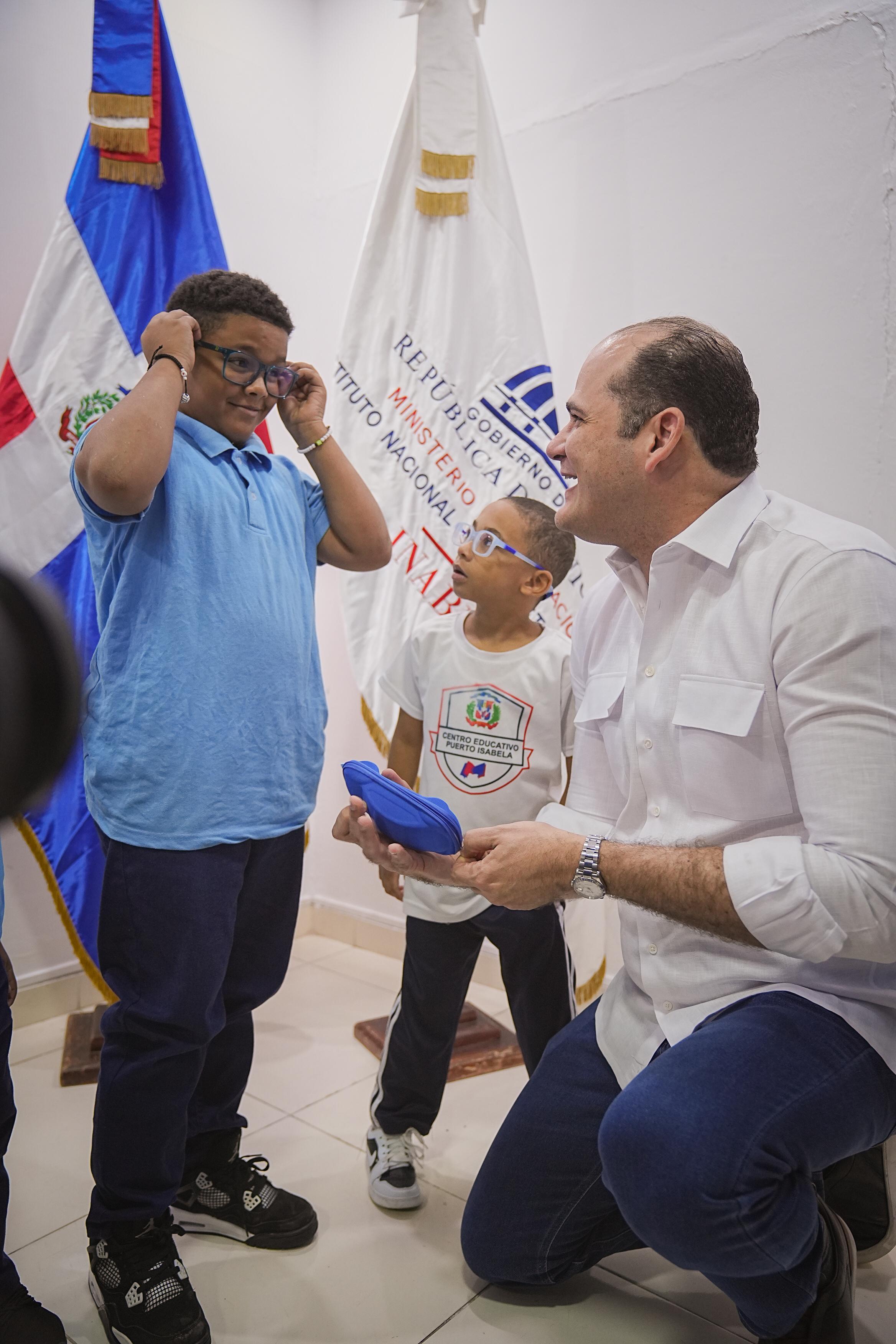 Al encabezar el acto de entrega de 341 lentes correctivos a estudiantes de Cristo Rey, Cotuí y Salcedo realizado en la escuela Puerto Isabela, del Distrito Nacional, Pérez indicó que, además, han reforzado los servicios de salud brindado a los estudiantes en las áreas: auditiva, visual, bucal, psicología y nutrición.