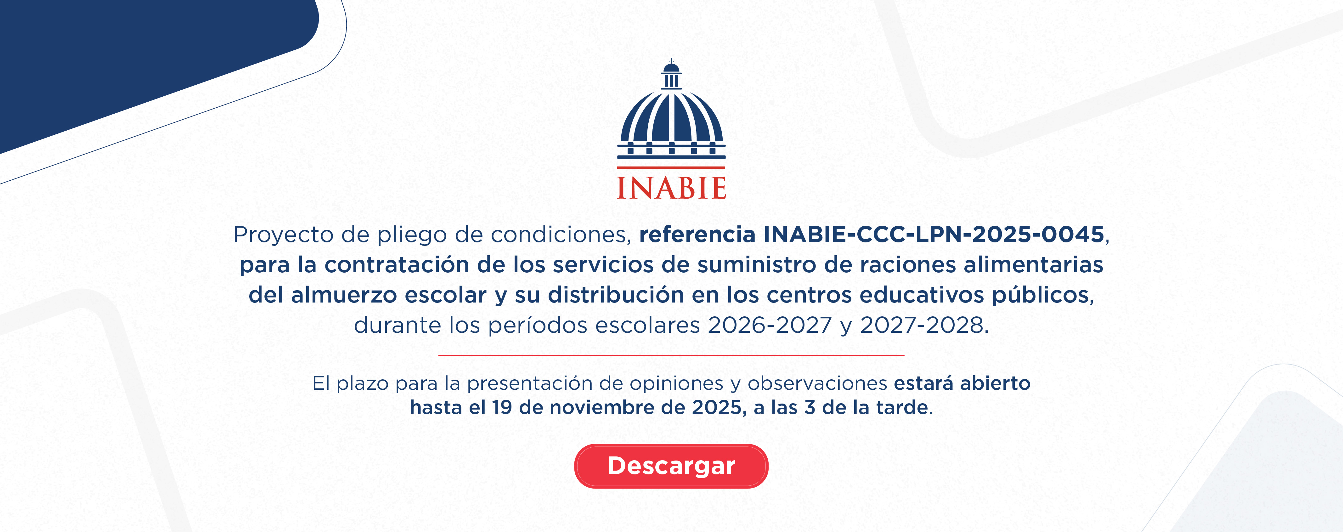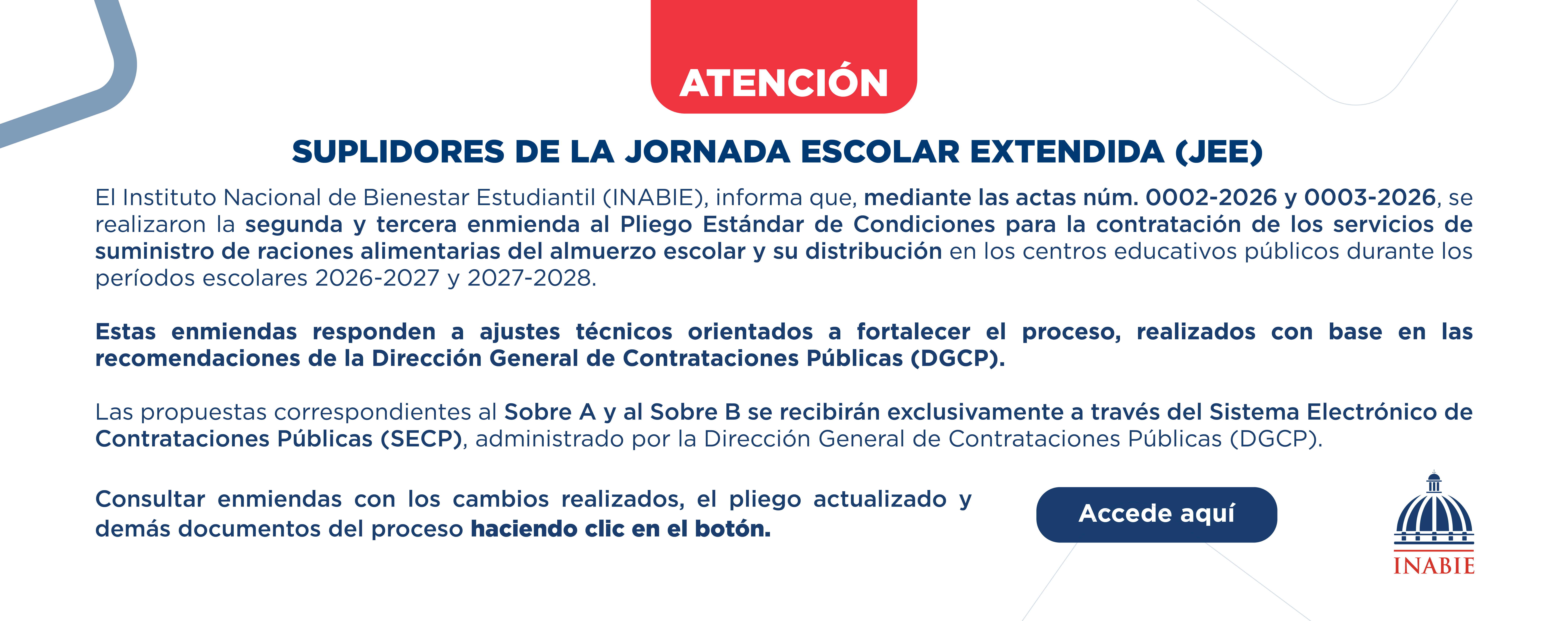 El Instituto Nacional de Bienestar Estudiantil (INABIE) fue creado en el marco de la Ley General de Educación 66-97, como una institución adscrita el Ministerio de Educación, con la finalidad de asegurar el acceso, permanencia y progreso académico de la comunidad estudiantil preuniversitaria más vulnerable del sistema público de educación mediante la estructuración de un sistema de protección social integral que asegure la cobertura de sus necesidades básicas